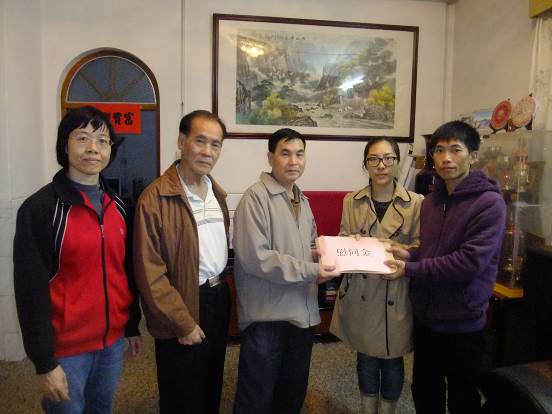 省科协慰问组向谭允的父亲(左三)送上慰问信和慰问金