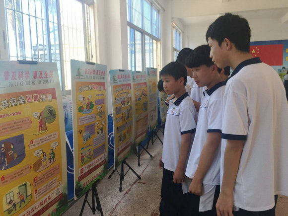 演练结束后,师生们观看了有关地震知识和公共安全应急指导、野外逃生自救、青少年自我保护、意外伤害等科普知识的宣传展板。