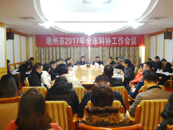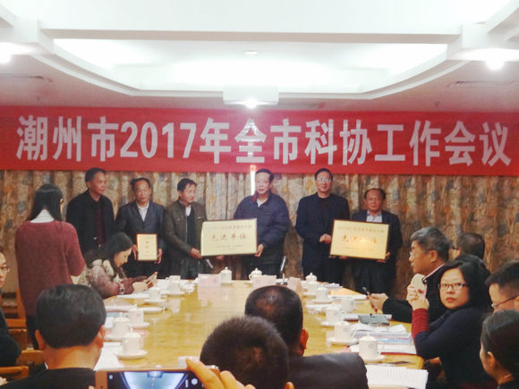 1月10日上午,潮州市科协在市迎宾馆五楼会议厅召开2017年全市科协工作会议。会议学习贯彻党的十九大精神,回顾总结2017年全市科协工作,研究提出2018年全市科协工作计划,表彰一批科普工作先进单位和个人,并为一批科普惠农兴村先进单位、科普教育基地、科普示范社区授牌。各县区科协主席,市级学(协)会、科普教育基地、科普示范社区的负责人,科普工作先进单位、先进个人,共50多人参加了会议。会议由市科协主席柯泓主持。