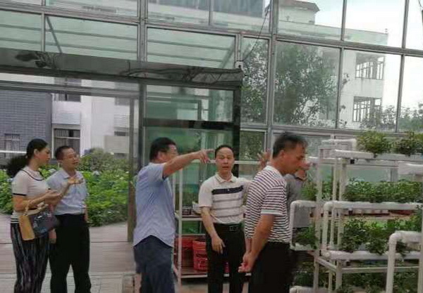 在玉瑶山庄,市科协调研组一行听取了湘桥区科协关于科普教育基地的建设工作汇报,实地考察了解玉瑶山庄申报科普教育基地的各项建设项目进展情况,参观温室大棚植物科普展示,玉瑶山庄科普人员现场演示植物工厂的温湿度、营养液投放等远程智能控制操作。