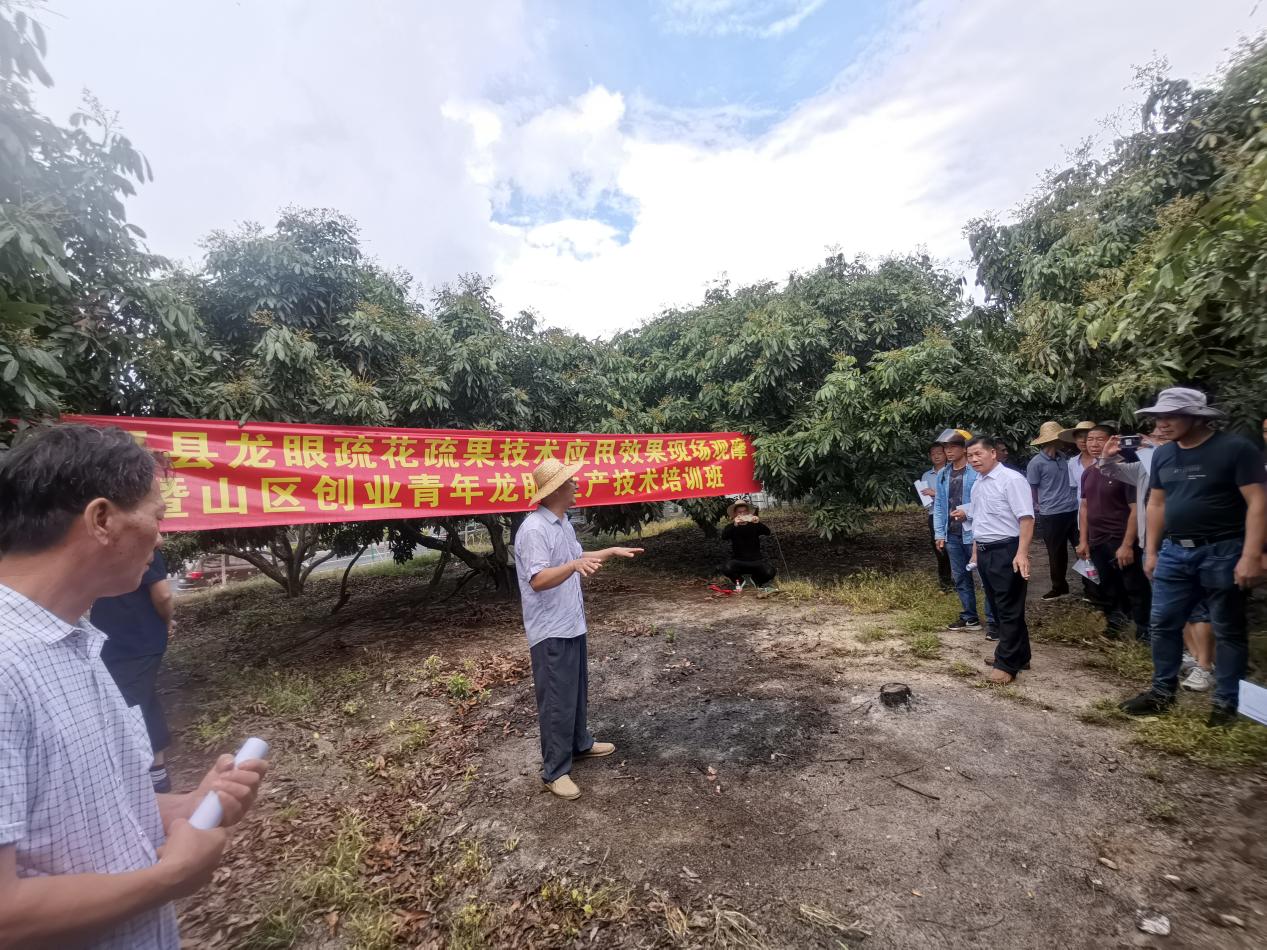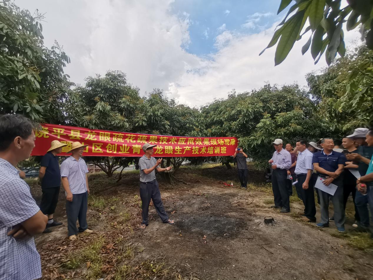 龙眼产业是饶平农业主导产业之一,龙眼疏花疏果对龙眼实现丰产稳产及对提高龙眼生产管理的经济效益具有极其重要的作用。为着力推进“学史力行,实事我来办”实践活动,把党史学习教育与推动发展、解决实际问题相结合,帮助提升农户龙眼种植管理技术和种植收益,潮州市果树研究所、饶平县科学技术协会、县关工委、联饶镇农技服务中心等部门联合举办饶平县龙眼疏花疏果技术应用效果现场观摩暨山区创业青年龙眼技术培训班,结合饶平县龙眼产业发展实际,推广龙眼疏花疏果技术,帮助农户解决龙眼稳产优质的技术难题。