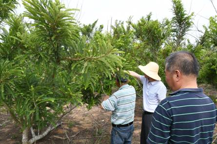 随后来到红光甜油甘种植基地,今年结果量较去年多,去年9月份高接的授粉品种狮头油甘,目前大多数长势良好,技术人员现场指导合作社负责人如何疏剪嫁接砧木上多余的枝条,以利于授粉品种的生长。现场调查发现,有1株红光甜油甘结果多,因为砧木上长有一枝实生枝条提供花粉交叉授粉,花期交叉授粉,提高了座果率,预计明年产量将大大提高。