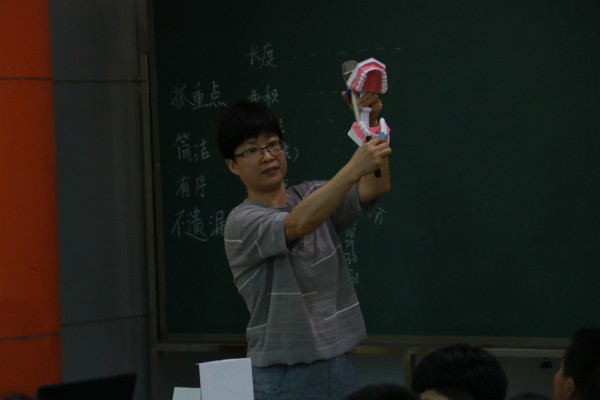 讲座的后半部分,王君老师向大家讲解口腔保健知识,内容包括:口腔健康知识介绍、几种常见的牙齿问题、做好牙齿保健的方法、正确刷牙的步骤。