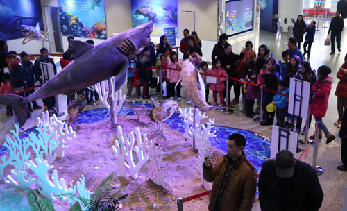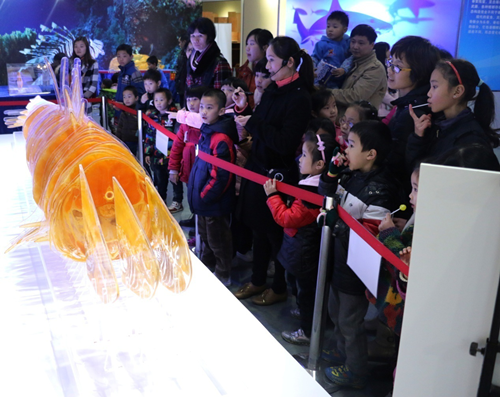 络绎不绝的游客参观东莞科学馆“生命奥秘•海洋精灵”科普展览