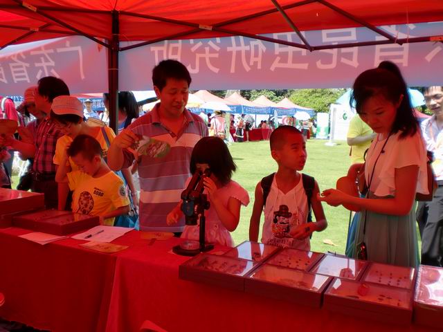 9月15日—18日,在“2013年广州市全国科普日重点活动”期间,广东省昆虫研究所科普基地免费向公众开放动物/昆虫科普展厅和动物家园及海岸湿地展厅。今年基地以“保护资源和保护生态环境, 建设幸福广州”为主题,积极参加“2013年广州市科协全国科普日重点活动”,开展了野生动物昆虫标本展览和动物(昆虫)科普知识挂图展览、生物显微镜看昆虫微小结构、辨别真假蜂蜜等一系列科普活动。在此期间,基地共接待80间小学、中学、大学和幼儿园的约2000名学生参观,派发了国家重点保护的野生动物科普VCD和科普画册、科普书籍及科普宣传资料共计500份。基地还向部分参观学校赠送了图文并茂的科普课件《昆虫科普知识与昆虫天敌》,供学校生物课学习使用。