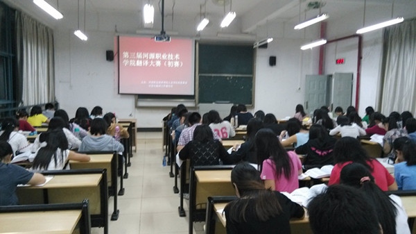 10月14日晚, 78名来自英语教育和商务英语专业的学生,在河源职业技术学院教学楼D201参加了第三届河源职业技术学院翻译大赛(初赛)。