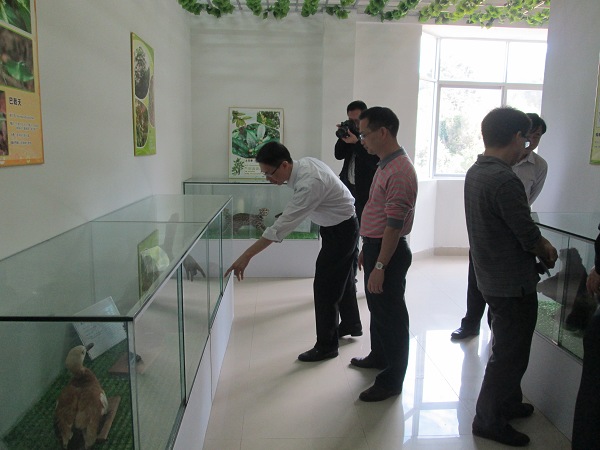 钟道良一行现场听取黄荫雄关于基地建设的工作汇报,参观保护区的动植物标本室、科普投影室和科普画廊等设施。钟道良对保护区的科普教育工作给予充分肯定,希望保护区再接再厉,不断加强科普教育设施建设,争取明年申报省级科普教育基地。