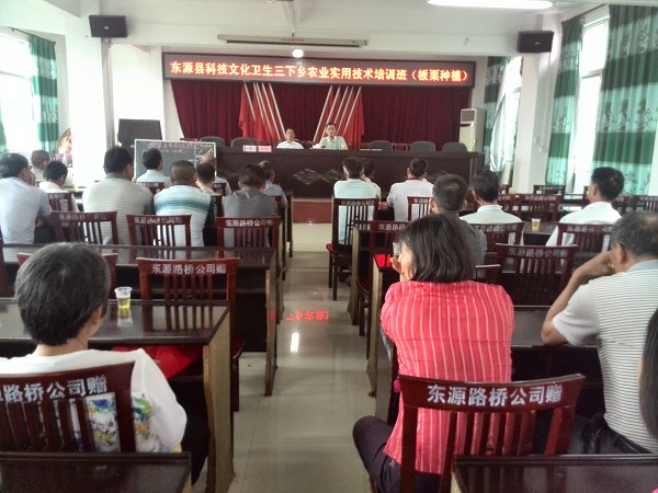 5月19日上午,结合2015年科技文化卫生三下乡活动,东源县科协联合船塘镇政府、板栗协会举办板栗种植技术培训班,针对目前板栗生产中存在的病虫害防治、壮果施肥管理等问题,提出技术解决方案,指导板栗种植户科学管理板栗园。当天,参加培训的有60多名农户,大家通过学习进一步提升了技术水平,为今年板栗丰收提供了技术支持。此次培训班由板栗协会会长欧林漳主讲,县人大副主任、科协主席李添鸿出席开班仪式并作讲话。