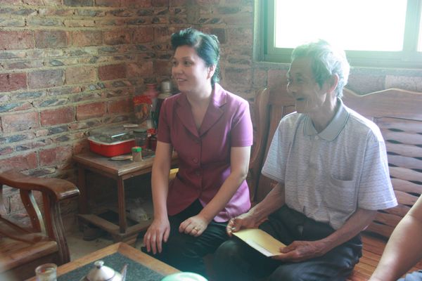 黄茂华是紫金县蓝塘镇南山村人,男,80岁, 1951年入伍,1955年退伍,参加过抗美援朝战争,身患耳聋等多种疾病,生活比较困难。吴素香详细了解黄茂华的身体和生活状况后,给他送上慰问金,祝愿他身体健康,叮嘱村干部要多关心老人的生活。