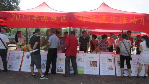 6月3日上午,河源市源城区科协联合区科技局在老城街心花园举行2015年源城区“科技进步活动月”科技咨询活动。活动组织市气象台、区卫计局、区农业局、区粮食局、区食药监局、区工商局、区地震局、区知识产权局、区人民医院等单位科技人员参加咨询活动,为广大群众提供医疗保健、农产品质量安全、食品安全、节能减排、防震减灾和农业实用技术等知识咨询。科技集市还组织东晨太阳能、益民太阳能、金绿生、欣乐环保、九明等10家民营科技企业,根据自身产品特色向广大市民宣传和展示各自节能和科技产品。
