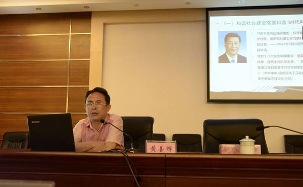 会上,省科协党组成员、副主席吴焕泉作题为“以改革创新精神推动科普工作再上新台阶”的工作报告,省科协科普部部长黄善辉作“如何做好科普工作”的辅导讲座,河源市科协党组书记、副主席陈春林就如何开展创建工作作了指导讲话。