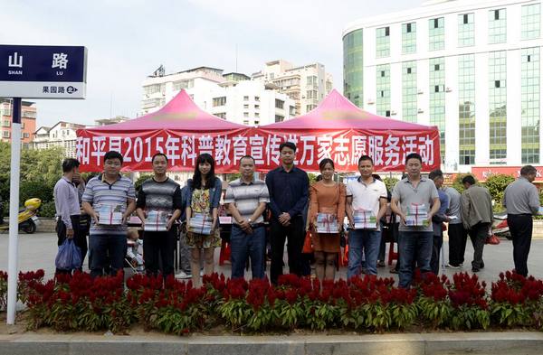 10月20日,河源市和平县科协、县科技局、团县委联合在县城六角亭举行科普教育宣传进万家志愿服务活动。