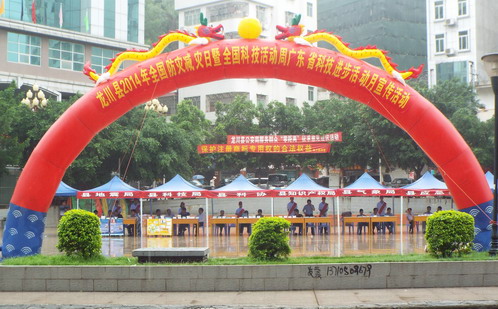 5月12日,龙川县科协联合县科技局、县地震局、县气象局、县应急办等部门在县城803车站广场举办全国防灾减灾日、全国科技活动周暨广东省科技进步活动月大型科学知识宣传活动。