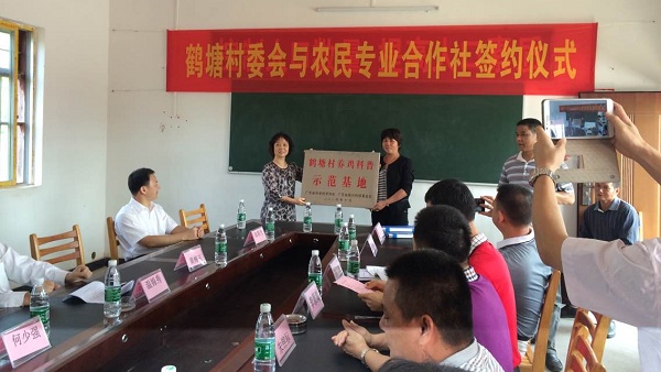 活动结束后,参加活动的领导还到鹤塘村委会出席鹤塘村科普书屋、鹤塘村培训室、鹤塘村农技服务站揭牌和鹤塘村养鸡科普示范基地授牌仪式,以及省科协帮扶的鹤塘村委会与安南、新顺和两个种植专业合作社签约仪式。