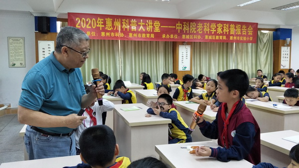 10月19-23日,中国科学院老科学家科普报告团8名科学家应邀来到惠州市惠城区,为部分中小学校举办了20场高端科普报告会,给广大的青少年学生送来了“科普大餐”。