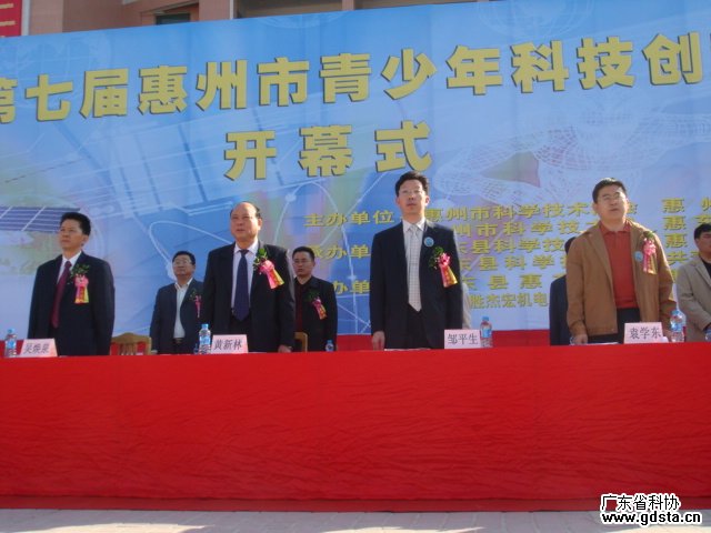 大赛于12月20日上午9:30开幕,12月21日举行了闭幕式暨颁奖典礼。省科协副主席吴焕泉、省青少年科技中心副主任叶新鹏、广州大学教授王正询、华南理工大学博士郑日荣、市人大常委会副主任黄新林、市政协副主席许玩宏、市科协主席邹平生、副主席邓森宏、市教育局副局长古昌平、市科技局副局长周章玉、县人大副主任林建英、县政协副主席徐妙忠、县政府副县长袁学东、县宣教卫系统专职副书记肖运祥、县科协(科技局)主席(局长)陈洪、县教育局局长李江雁、团县委书记张利军、惠东华新实业有限公司总经理叶东强、深圳胜杰宏机维修有限公司总经理朱水及各县区科协负责人等领导嘉宾出席了开幕式。