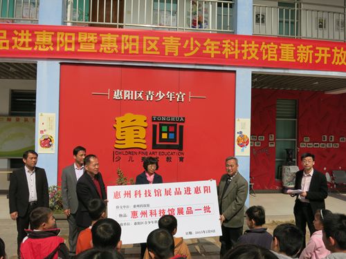 2月9日上午,惠州市惠阳区在青少年宫举行惠州科技馆展品进惠阳暨惠阳区青少年科技馆重新开放仪式。惠州市科协副主席夏华奖、惠阳区副区长朱文转出席活动并为科技馆重新开放揭牌。参加活动的还有区府办、区科协、团区委等有关部门领导,以及区科协、区青少年宫工作人员和部分青少年代表。