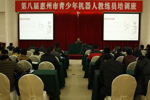 3月13日,惠州市科协、教育局在惠州科技馆举办第八届惠州市青少年机器人教练员培训班,邀请来自中鸣、博思、西觅亚等厂家和惠州机器人工作室的4名专业技术人员讲授机器人创意、综合技能、足球、VEX、FLL竞赛规则,并按项目分组进行交流、实际操作和问题解答。惠阳区科协、教育局组织了20所中、小学的30名青少年机器人教练员参加此次培训。