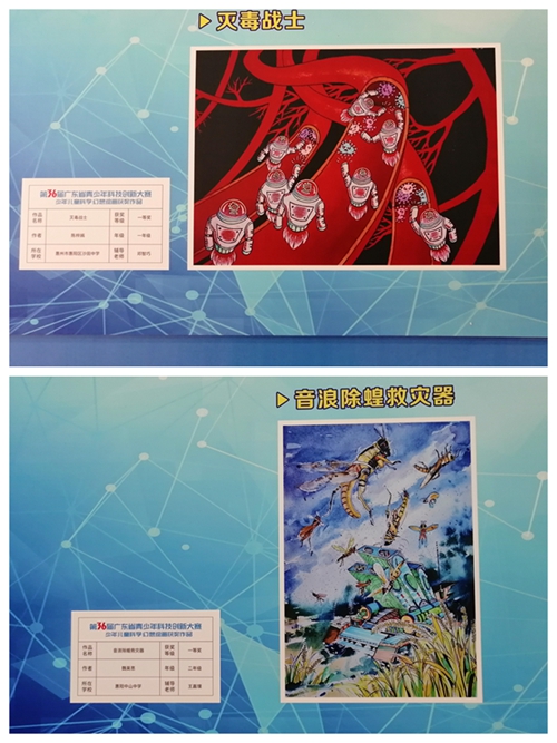 青少年学生科技创新竞赛的成绩更为突出。其中,惠阳中山中学魏昊思的《音浪除蝗救灾器》、惠阳区沙田中学陈梓嫣同学的《灭毒战士》荣获少年儿童科学幻想绘画一等奖;惠阳区半岛学校熊榆敬的《智能病毒消灭器》、惠阳区沙田镇中心小学曾晓晴同学的《海底清洁净化鱼》荣获少年儿童科学幻想绘画二等奖;惠阳区淡水中心小学胡子墨同学的《多功能疫苗研制系统》荣获少年儿童科学幻想绘画三等奖。同时,惠阳区第五中学邱嘉航、杨舒淇同学的《气动平衡式电动医用手套佩戴机》和华南师范大学附属惠阳学校龚迟同学的《交通路口安全通行辅助系统》、李明轩同学的《水龙头环保限位节水器》荣获青少年科技创新成果竞赛项目二等奖;广东惠阳高级中学赖泓宇同学的《防火灾自动断电吹风筒》、惠阳中山中学马才雅同学的《监测液体泄漏的多功能装置》荣获青少年科技创新成果竞赛项目三等奖。此外,惠阳区崇雅中学科技实践探究小组的《走近地摊,关注民生》和惠阳高级中学探“蚬”实践活动小组的《惠州探“蚬”之旅》也分别荣获青少年科技实践活动项目二等奖和三等奖。