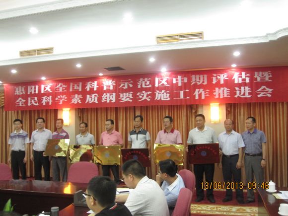 近几年来,惠阳区委、区政府高度重视科学普及和科技创新工作,动员和组织广大科技工作者投入经济建设主战场,积极推动科技进步和科技创新。特别是通过创建全国文明城市、全国科技进步示范区和全国科普示范区,涌现了一批科普示范(先进)单位和先进个人,扎实有效地推动了《全民科学素质纲要》的深入实施,为惠阳转变经济发展方式,构建和谐文明社会作出了积极贡献。如惠阳区实验小学、惠阳光耀实验学校被评为“广东省科学教育特色学校”;万顺社区、桥东社区、司前社区和秋长社区,被评为“广东省科普示范社区”,其中万顺社区还被评为“全国科普示范社区”;镇隆荔枝生产协会、顺景红葱协会被评为全国“科普惠农兴村计划”先进单位,叶翰江同志获评先进个人。