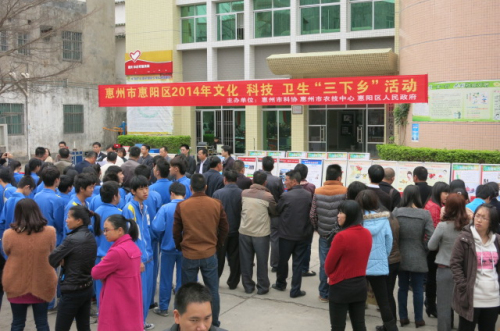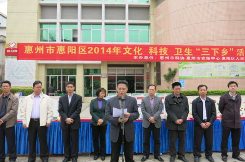 3月21日,由惠州市科协、惠州市农技推广中心、惠阳区政府主办,惠阳区科协、惠阳区文明局、沙田镇政府联合承办的惠阳区2014年文化、科技、卫生“三下乡”活动在沙田镇综合文化站隆重举行。惠州市科协副主席黄宗太、惠州市农技推广中心副主任李惠陵、惠阳区副区长朱文转等出席活动并讲话。参加此次活动的人员还有惠州市农技推广中心、惠州市科协相关部室的专家、领导,惠阳区直28个相关单位的70多名业务骨干和科普志愿者,以及沙田镇干部群众和学生代表等300多人。