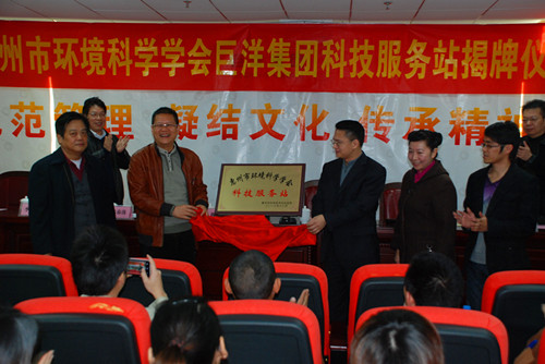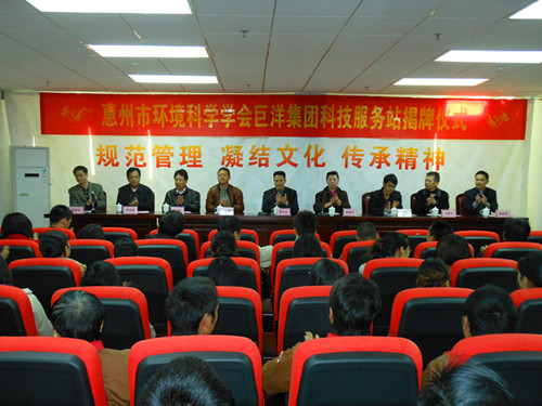 12月28日,为贯彻落实惠州市科协《关于开展建立学会科技服务站工作意见》的要求,惠州市环境科学学会在巨洋集团有限公司举行学会科技服务站签约挂牌仪式,并向巨洋集团有限公司授予学会科技服务站牌匾。惠州市科协副主席黄宗太、学会部部长周惠玲、市环境科学学会负责人黄勇祥、惠城区科协主席李金治、巨洋集团有限公司董事长林春涛等出席仪式,参加仪式的还有市科协、市环境科学学会、惠城区科协、巨洋集团有限公司员工代表等100多人。