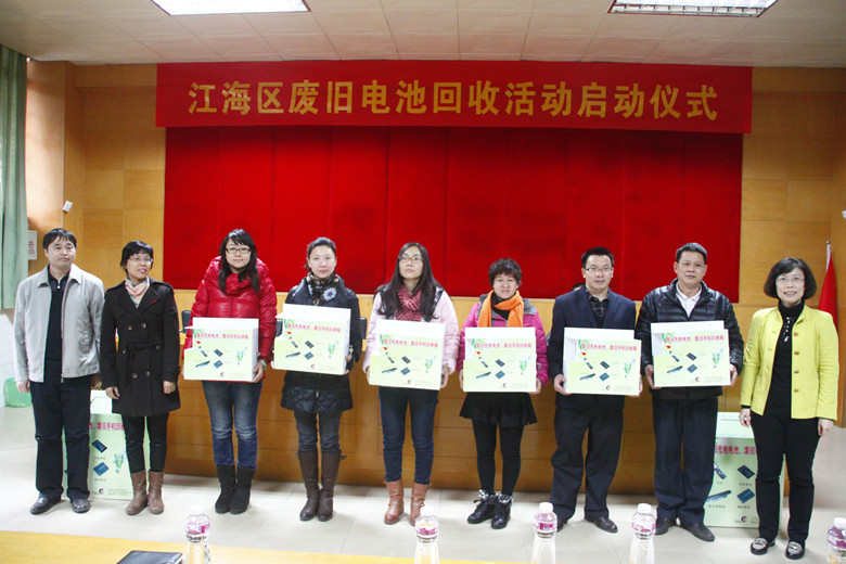 1月9日下午,江门市江海区科协联合区委宣传部、区教育局和江门市长优实业有限公司在江海区礼乐中学举办废旧电池回收活动启动仪式。区委常委、宣传部部长周婉玲,区科协主席吴殿晖等领导出席启动仪式。长优实业有限公司负责人以及各中、小学校分管环保教育工作的教师和学生代表150多人参加了启动仪式。