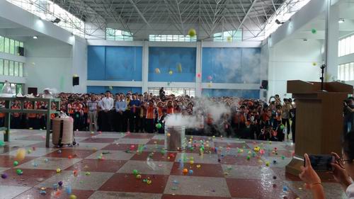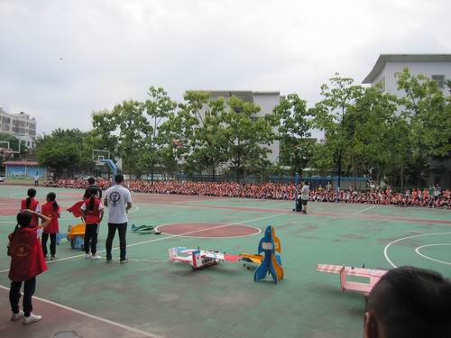 活动中,广东科学馆的科技辅导老师小胖哥哥和小卢哥哥联手上演趣味性十足、科学氛围浓厚的科学实验秀《神奇的液态氮》,博得现场满堂彩,掌声、欢呼声、呐喊声,声声入耳;笑点、知识点、科普点,点点育人。师生们还观看了由东莞科技馆带来的创意航模秀,落叶飘、吊机、俯冲等酷炫十足的航模技术动作,引来观众们的阵阵尖叫;愤怒的小鸟、飞天的肥猪、火箭发射、子母机空中分离等贴近生活的创意航模,赢得观众们的喜爱和好奇。