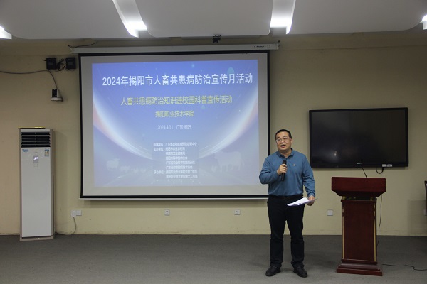 为引导广大学生深入了解人畜共患病的防治知识,通过“教育一个学生,带动一个家庭,辐射整个社会”,进一步提高群众对人畜共患病的认知度和防控意识,4月11日,省动物防疫技术交流协会、市农业农村局、市卫生健康局、市科协在揭阳职业技术学院举办人畜共患病防治科普专题讲座。