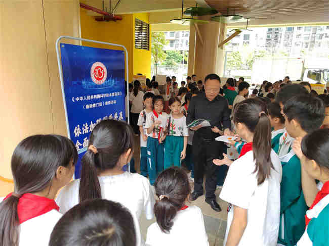 茂名市科协组织了科普大篷车科普展品展示和人工智能、智慧教育、国家安全、健康科普及茂名籍科学家精神事迹等主题科普展板展出,开展新修订的《中华人民共和国科学技术普及法》宣传,向学生派发了科普宣传单张和小册,增强青少年学生科学意识,激发青少年科学探索的热情。机器人互动表演,博得师生们阵阵掌声。