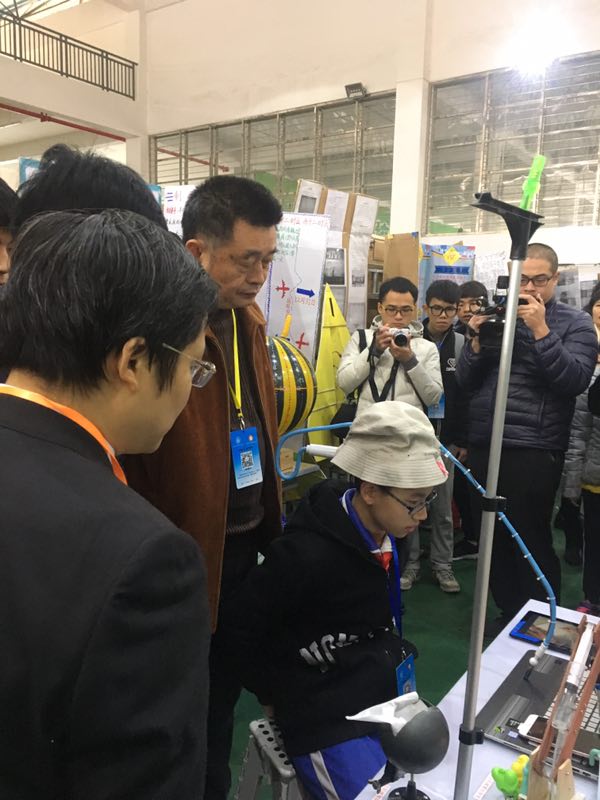 据了解,在活动现场,“智能”“生活”是今年参赛作品的主题,其中梅江区江南育才小学学生卓鸿邦的无臂残疾人专用多功能网店工作台吸引了众人目光。“我制作了头罩式人体生理电传导电容笔、脚踏式液压机械臂电容笔,让无臂残疾人可以用头部、脚部操作上网。”卓鸿邦说。卓鸿邦的父亲卓惠民告诉记者,卓鸿邦在家里有个工作室,里面电钻、电切割机等工具都有,家人都鼓励小孩搞发明。