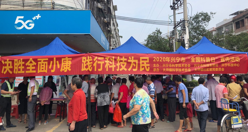 2020年是全面建成小康社会和打赢脱贫攻坚战的决胜之年。为深入贯彻习近平新时代中国特色社会主义思想,贯彻落实党的十九大和十九届二中、三中、四中全会精神,弘扬科学精神、普及科学知识,营造创文创卫的良好氛围,为脱贫攻坚助力。9月22日上午,兴宁市科协联合兴宁市科技实验站、兴宁科技中心、大坪镇科协、大坪镇社区居委会在大坪镇圩镇共同组织开展兴宁市2020年“决胜全面小康,践行科技为民”全国科普日宣传活动。