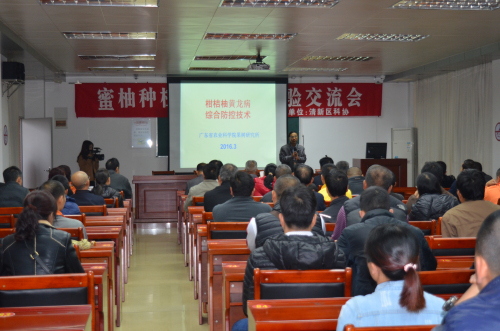 马培恰研究员首先以果农普遍关心的热点“柑桔柚黄化树综合防控技术”进行讲解,他以图文并茂的方式、通俗易懂的语言,围绕“一般黄化树的原因分析、一般黄化树的处理、矫治方法以及执行标准化栽培技术,培养健壮树势,预防黄龙病和黄化树的发生”等进行了讲解。同时和蜜柚种植户现场对接互动,解答果农们现场提出的问题,提出解决办法和对策措施。通过座谈交流,帮助果农解决了在蜜柚生产管理过程中遇到的困难和问题,为促进清新区蜜柚产业的顺利发展打下基础。