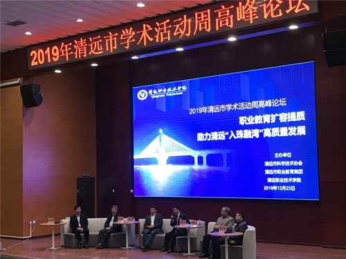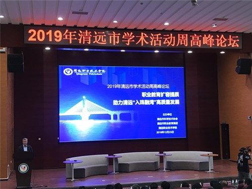 12月23日,由清远市科协、市职业教育集团和市职业技术学院共同主办的2019年清远市学术活动周高峰论坛在市职业技术学院举行。市委常委、统战部长刘汉球、市职业技术学院党委书记林海龙、市科协党组书记陈耀辉等领导出席了论坛,市教育局、市科技局、市人社局、市科学技术协会等单位代表和500多名教师参加了本次论坛。