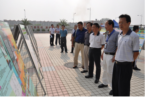 图为省科协副主席吴焕泉(右三)带队一行参观沧江中学科普展板