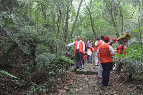 图为:科普志愿者们到肇庆九龙湖考察华南地区发现的最大桫椤