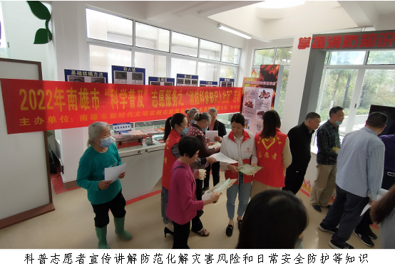 科普志愿者通过展板宣传、现场咨询、发放宣传资料等方式,向广大群众普及气象自然灾害、公共设施、交通车辆、燃气安全和用电安全等防范化解灾害风险和日常安全防护等知识,增强广大群众安全防范意识和防灾减灾能力。