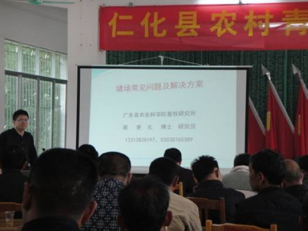 根据需求设置,此次农村青年创业培训班采取集中培训与实践考察相结合的方式。集中培训主要内容不仅有华南农业科学院畜牧研究所博士生研究员、蔡更元教授主讲的《生猪标准化养殖》、华南农业大学罗胜军教授主讲的《肉鸡标准化养殖》以及郴州大北农饲料有限公司技术员主讲的《饲料的科学、合理调配》等方面的内容,还包括有农村青年创业典型经验介绍、政策解读、创业规划、市场营销等方面的知识内容。期间还安排学员到周田镇风顺养殖基地进行实地考察,学习创业经验。