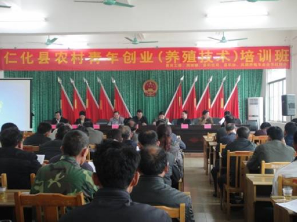 为进一步提高农村青年的创业能力、自主创新能力、生产经营能力及科技应用能力,努力实践农村青年的梦想,4月22~23日由韶关市仁化县关工委、科协、科技局、周田镇风顺养殖农民专业合作社和周田镇政府联合举办为期2天农村青年创业(养殖技术)培训班举行,韶关市关工委、仁化县科协、科技局主要领导到场参加了这次培训活动。参加培训的学员主要来自仁化县主要的养殖户、周边一批致富奔康带头人和有就业创业愿望的农村青年共120多人。仁化县委常委、周田镇党委书记邱志坚出席了开办仪式并做了动员讲话。