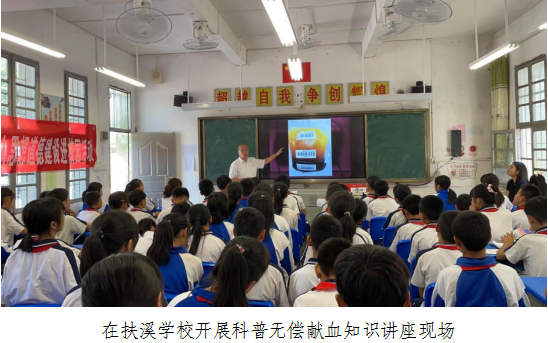 科普大篷车暨无偿献血科普知识进校园活动在扶溪学校同时进行。韶关市科技馆工作人员带来“VR眼镜”“魔箱”“机器人表演”等科普展品供孩子们一一体验,这些从未见过的新奇科技,令孩子们时而惊喜,时而大笑,欢呼雀跃地参观体验,活动现场一片欢声笑语。随后韶关市中心血站人员开展科普无偿献血知识讲座,为学生们讲解健康生活、无偿献血等知识,使学生充分认识到无偿献血是无私奉献、救死扶伤的崇高行为,是爱心奉献的体现。