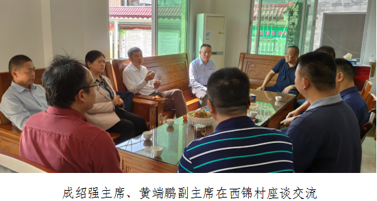 在新江镇西锦村,成绍强主席与驻镇工作队、西锦村两委干部进行交流,强调要落实好乡村振兴政策,把握好重点帮扶村的定位,挖掘现有农业产业,利用好科技支持,为农户增产增收,做大做强村域产业,做到产业兴旺、产业富民。