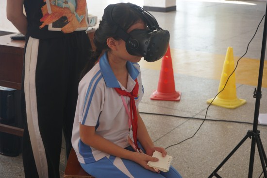 在VR现场特别“火爆”,同学们排起了长龙等待参加。那是因为只要带上VR眼镜,便可以在虚拟世界里体验惊险刺激的过山车,那感觉就真的像是在过山车上飞驰一样。这真的是科技的神奇之处啊。