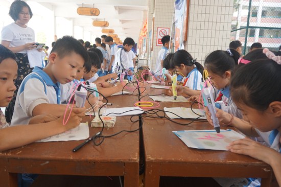 在3D打印笔的体验区上,同学们纷纷通过手中的3D打印笔,描绘出一件件美丽的“小物件”,纷纷感慨原来科技也能让我具备“神笔马良”的超能力。