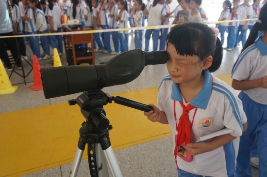 在星空观测站,同学们纷纷成为“小小天文学家”。通过望远镜,同学们可以观测星空上星星,顺着星迹的寻找,便能看到不同的星座组成。
