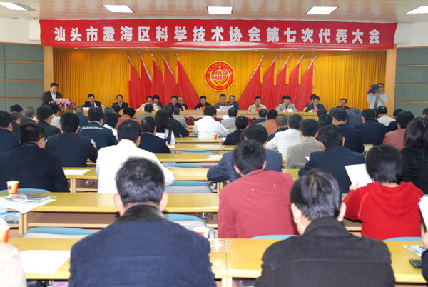 汕头市澄海区科学技术协会第七次代表大会于2009年11月23日在澄海区党政大楼隆重召开,来自全区各条战线的105名科技工作者代表欢聚一堂,肩负全区科技工作者的重托,为建设创新型澄海、加快经济社会发展、构建社会主义和谐社会建言献策。