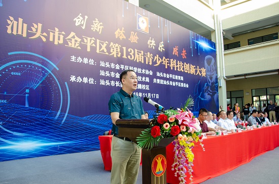 2019年11月17日,汕头市金平区各中小学校34个代表队的青少年选手、科技辅导员、观摩师生和汕头大学的专家评委共500多人齐聚在汕头市长厦学校龙腾校区,共赴科技创新交流盛宴。此次金平区第13届青少年科技大赛以“创新、体验、快乐、成长”为主题,由金平区科协牵头组织,联合区教育局、区科技局、团区委共同举办。大赛分为创新作品、科技实践、科幻画和科技辅导员创新项目四大内容,面向全区中小学老师和学生共征集到创新项目135件,科技实践4件,少儿科幻画632件,科技辅导员项目3件。