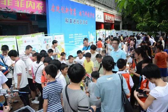 6月18号上午,汕头市龙湖区丹霞社区居委会楼下热闹非凡,人头攒动,过往的行人,尤其是家长和孩子们纷纷被这热闹的场景吸引过来——这里正在举行“启迪创新智慧 放飞科技梦想”的科普进社区活动。作为龙湖区“2016年科技进步活动月”系列活动之一,此次活动内容丰富、生动活泼,自发前来参加的居民群众数量较多,保持较好的文明风尚,现场既热闹,又秩序井然。