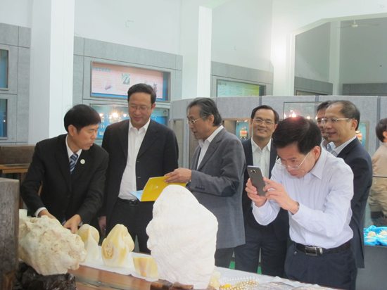 谢绍河先生向中科协、省、市、区有关领导介绍珍珠相关知识