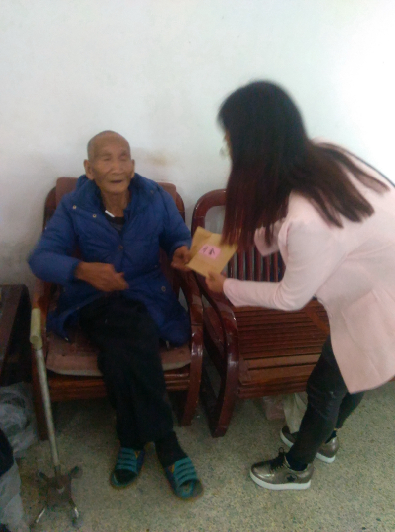 汕头市龙湖区科协主席给陈顺发老人送上节日慰问金,嘘寒问暖