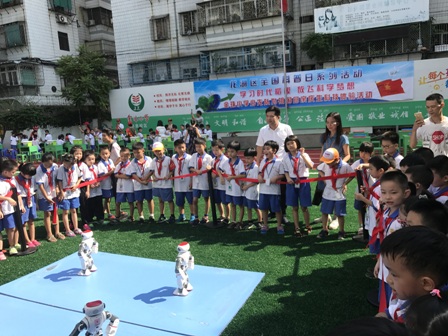 在机器人展示现场挤满了前来大开眼界的同学们和家长们。随着动感的音乐响起,机器人们开始有节奏地舞动起来,它们一会儿举起右手,一会儿将双手伸直,动作时慢时快,可爱地摆动着,把全场的观众都逗乐了,“萌”得让同学们忍不住跟着跳起舞来。在活动的另一边,圆圆的脑袋,会转动的眼睛,萌萌哒的“小优”,让同学们爱不释手,大家围绕在小优身旁,讲故事、教拼音、对话,“小优”瞬间变身可以和孩子玩耍的小伙伴。各式各样的机器人,让同学们感受到了科技带来的震撼与魅力。